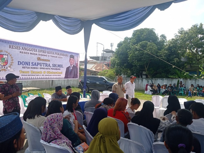 Pekanbaru - Anggota DPRD Pekanbaru dari Fraksi PAN, Doni Saputra SH MH melaksanan kegiatan reses di Lapangan Bandar tepatnya di RT 02/RW 05, Kelurahan Kampung Dalam, Kecamatan Senapelan, Ahad (21/1/2024).